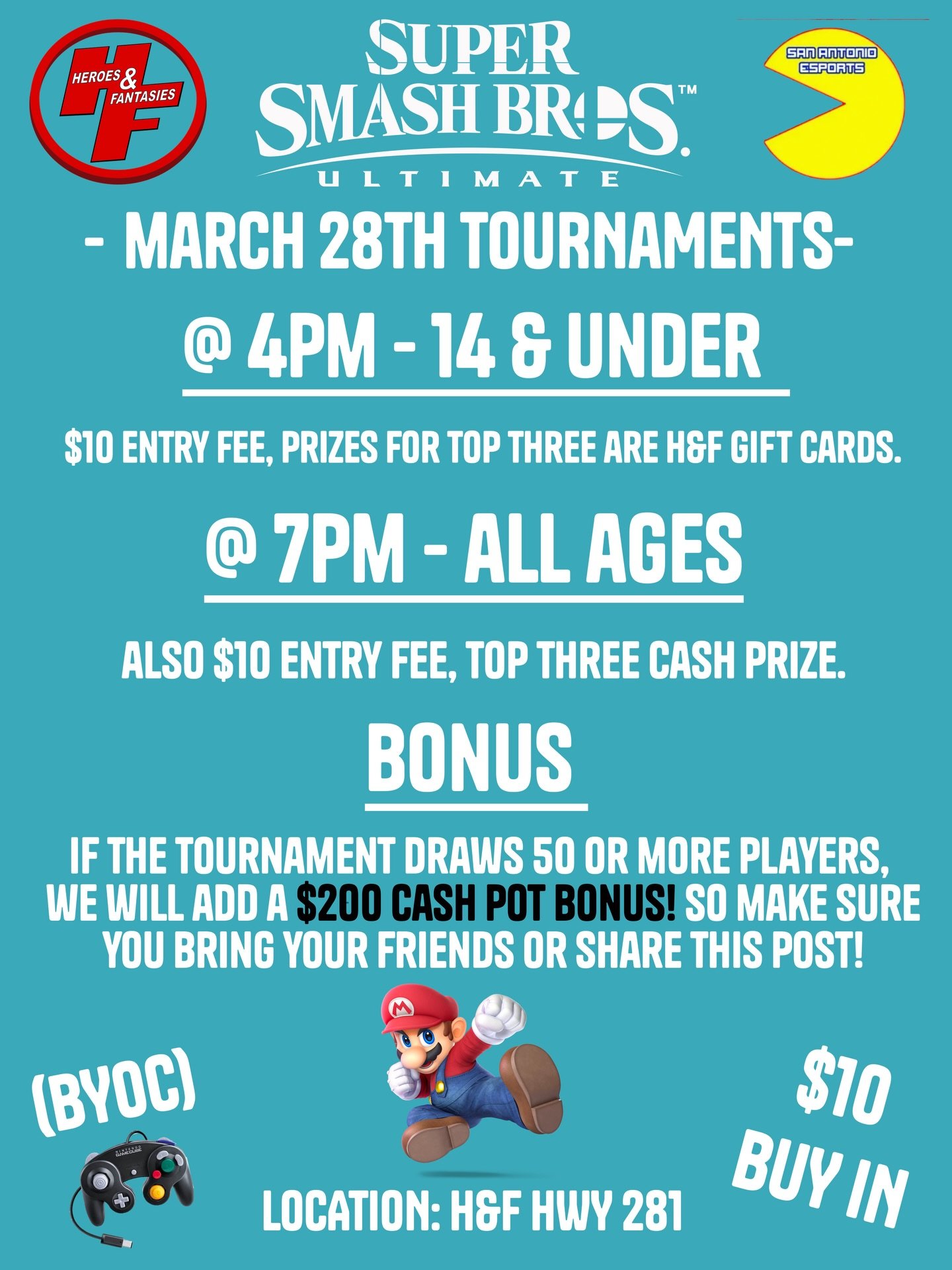 Here is our weekly Game Play schedule for our 281 location. Pat Booker location Gaming schedule coming soon!